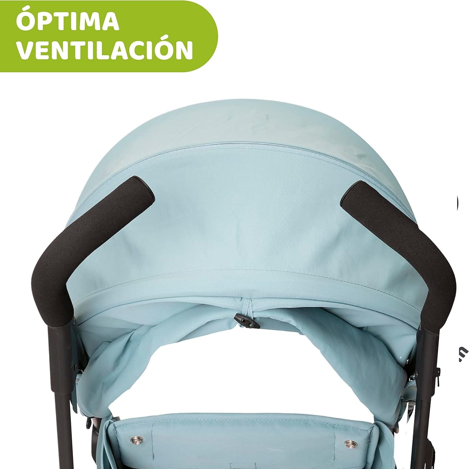 - PROTECȚIE SUPLIMENTARĂ. Capotina extensibilă, impermeabilă, cu filtru UV50+, protejează copilul în orice condiții meteo. Deschiderea spatelui asigură o circulație excelentă a aerului.