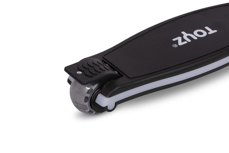 Pentru și mai multă distracție, trotineta este echipată cu roți care luminează în mișcare și o bandă LED alimentată cu baterii. Efectele luminoase colorate nu doar sporesc vizibilitatea și siguranța copilului, ci adaugă și entuziasm fiecărei plimbări.